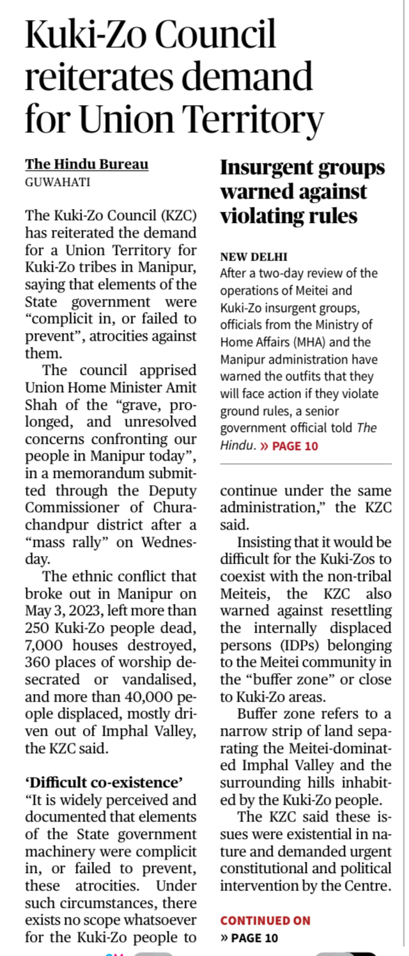 Kuki-Zo Issue: Demand for Separate Union Territory in Manipur