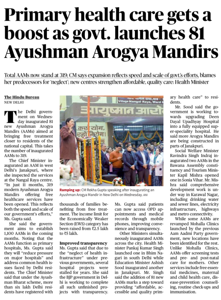 Delhi government launched 81 Ayushman Arogya Mandirs.