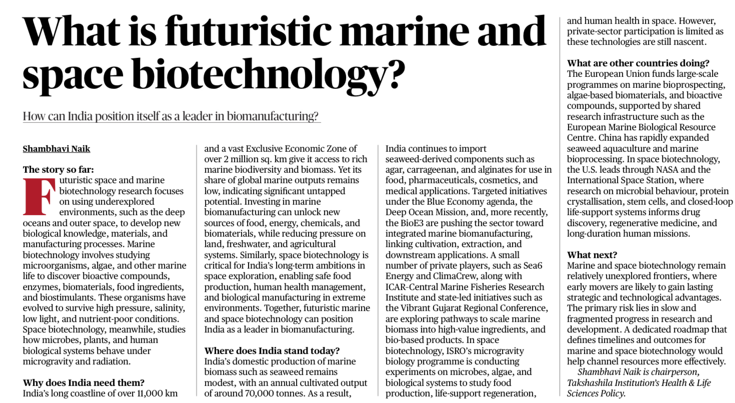 • ISRO’s microgravity experiments on microbes, algae, life-support systems