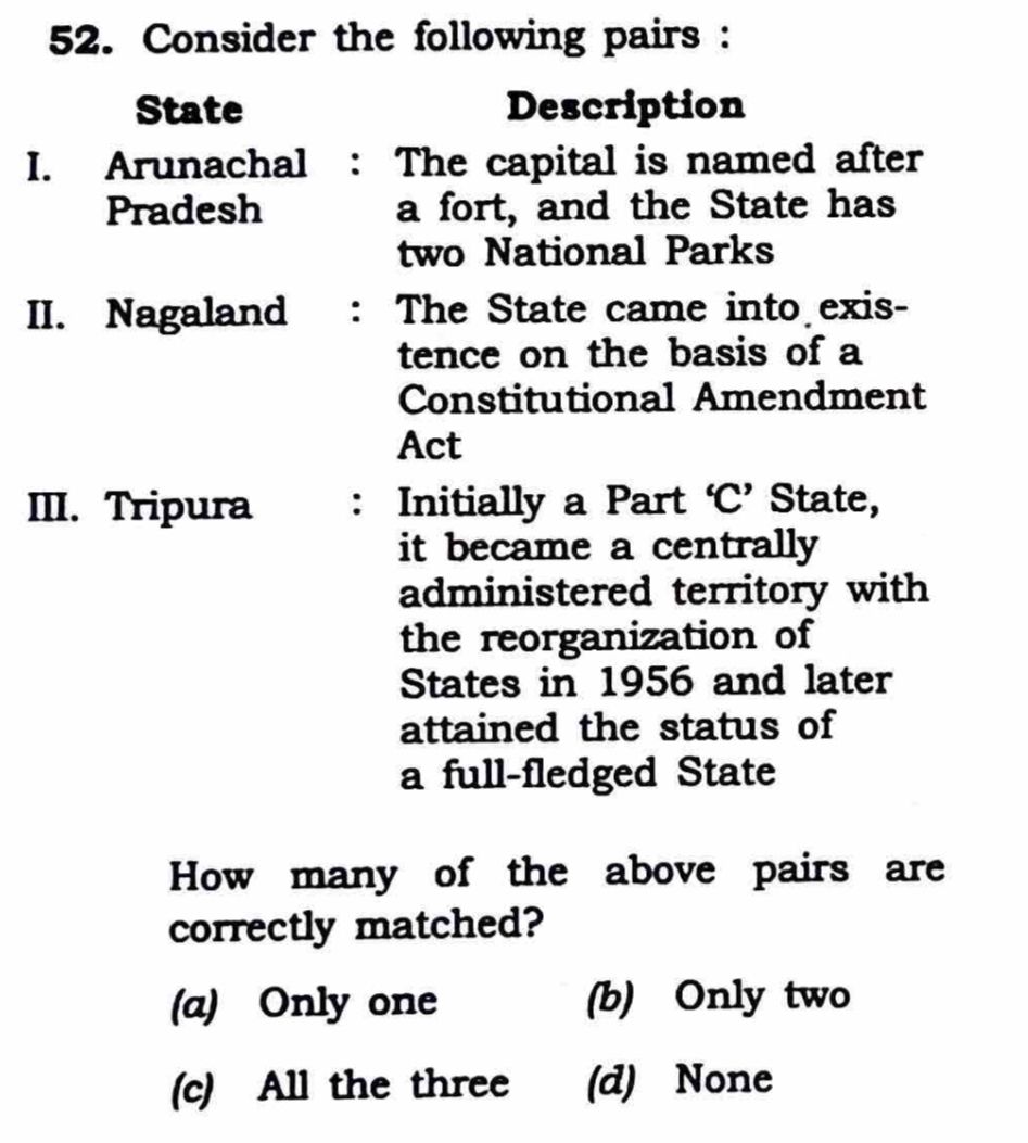 • Arunachal Pradesh → 1972: UT → 1987: State