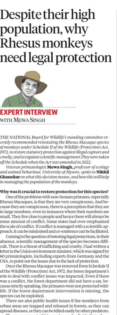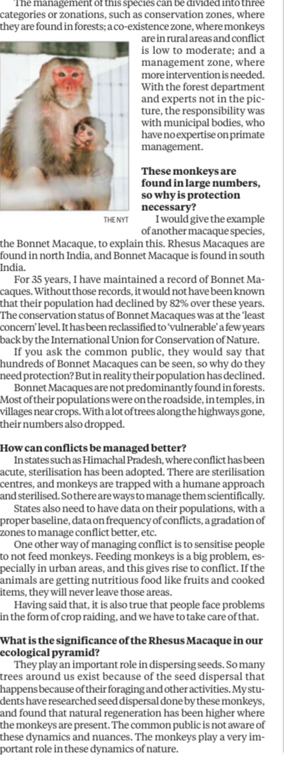 - NBWL recommended restoring Rhesus Macaque to Schedule II of the Wildlife Protection Act, 1972.