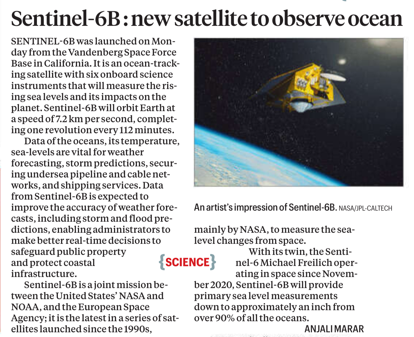 - Works with its twin Sentinel-6 Michael Freilich (launched 2020).