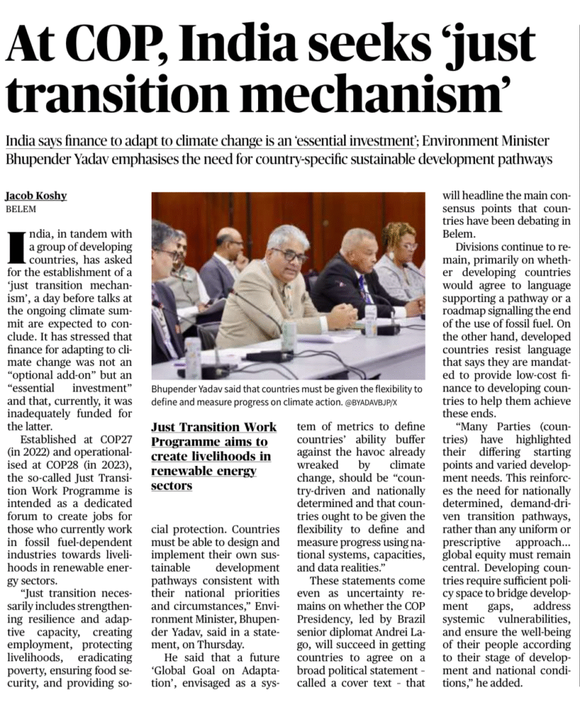 India Climate Change Policy UPSC: India Calls for a ‘Just Transition Mechanism’ at COP