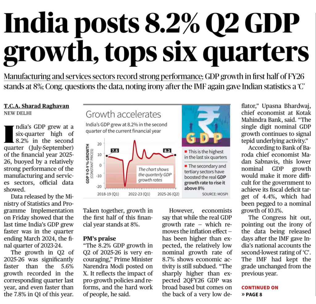 • Q2 FY26 Real GDP growth: 8.2%