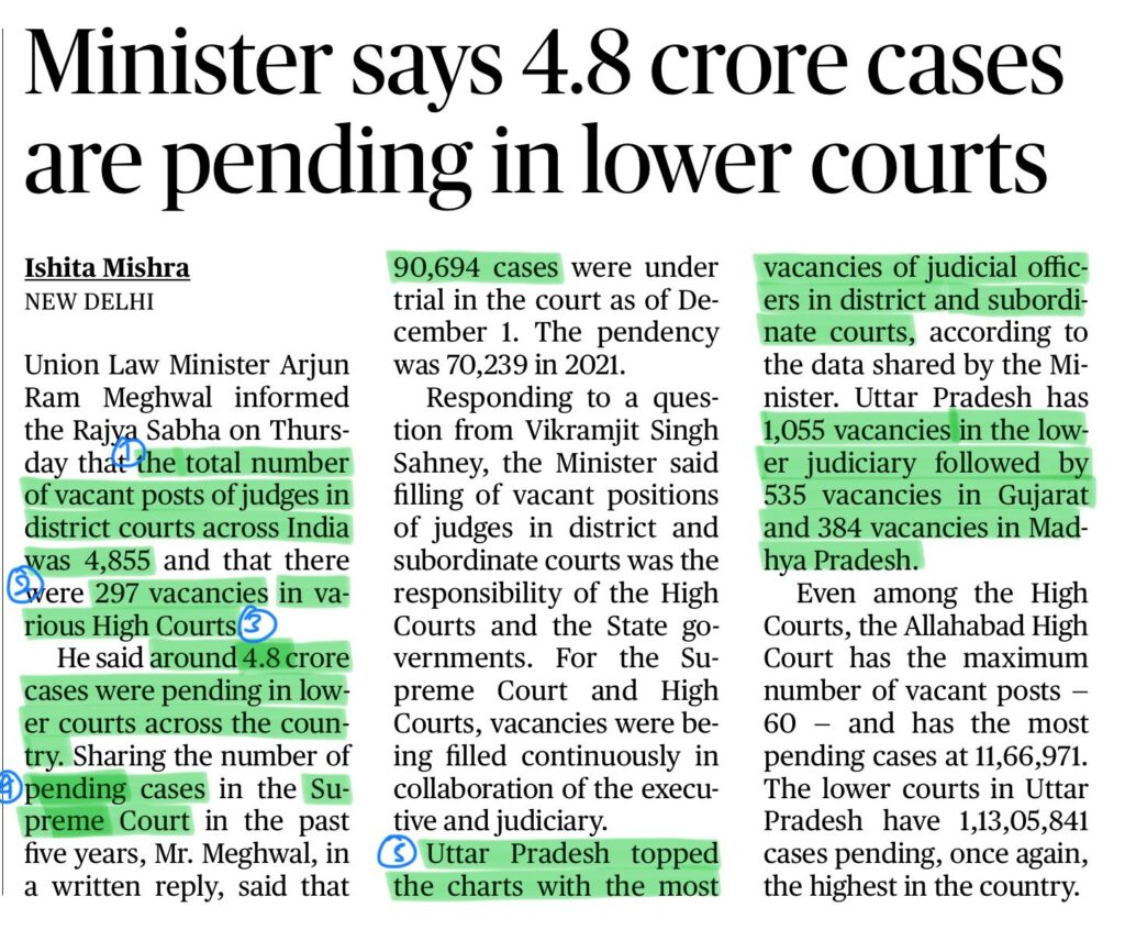 1. Vacant judge posts in district courts (India): 4,855