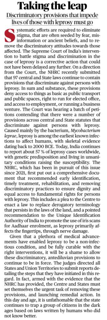 • 97 Central & State laws still discriminate against leprosy-affected persons.