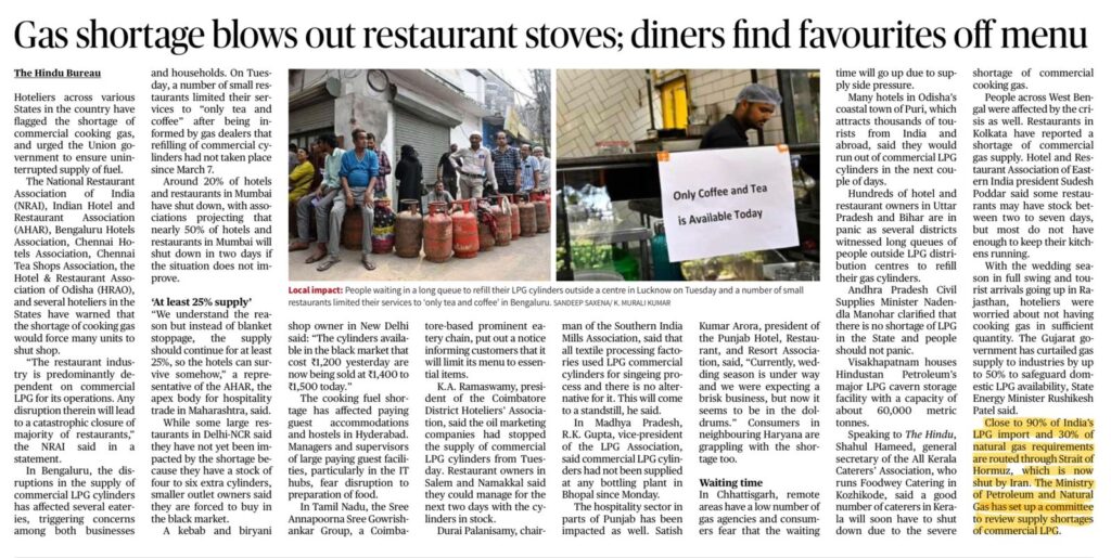 • Shortage of commercial LPG particularly affected restaurants and hospitality businesses.
