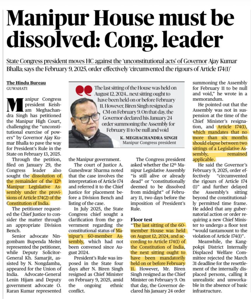 Manipur Legislative Assembly and Constitutional Crisis Explained