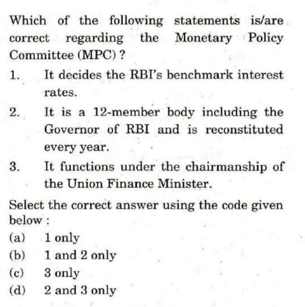 • RBI: Governor (Chair), Deputy Governor (Monetary Policy), one RBI nominee