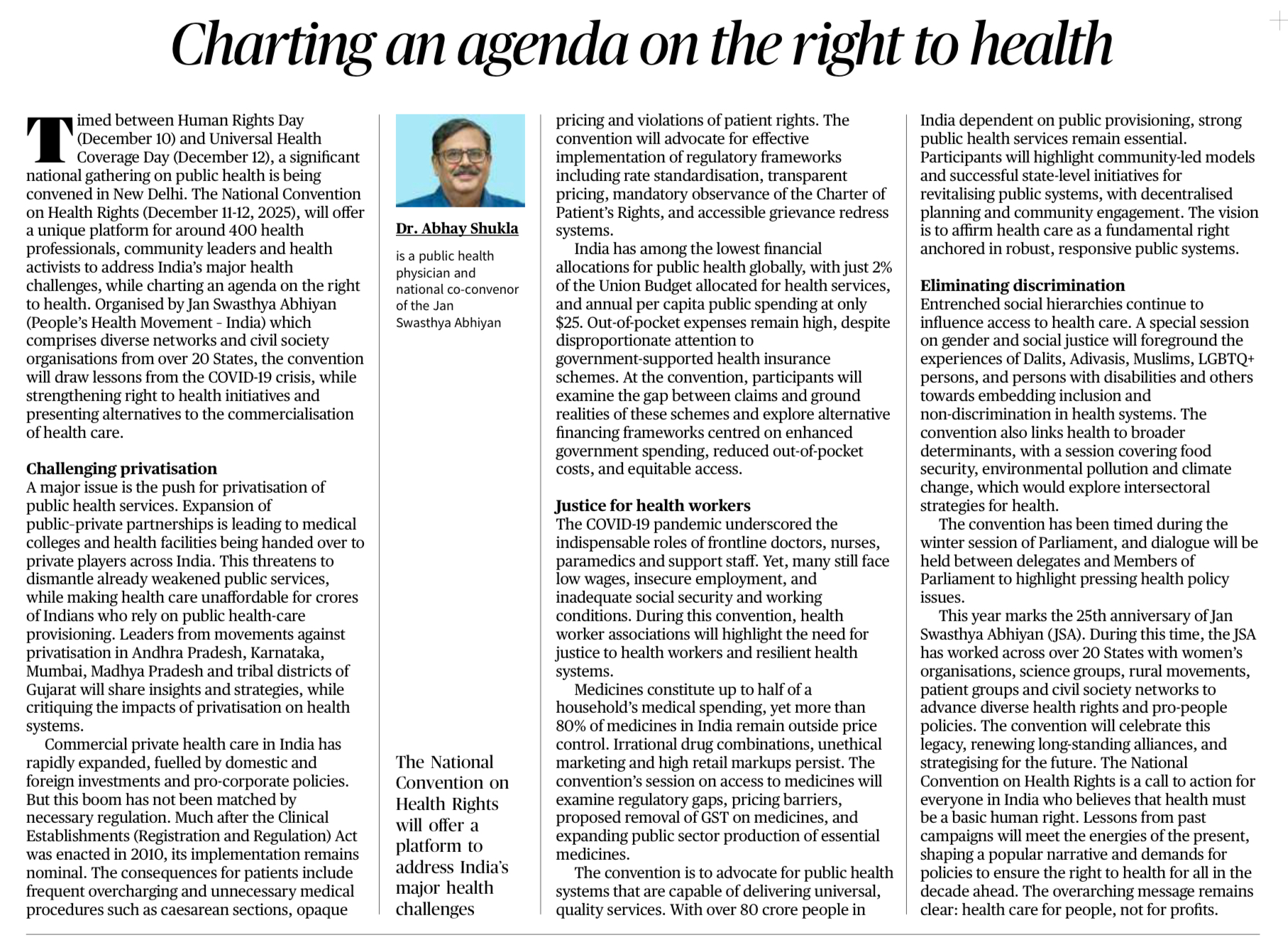 • The National Convention on Health Rights (Dec 11–12, 2025) brings together health professionals and civil society from 20+ States to shape a national agenda on the Right to Health.