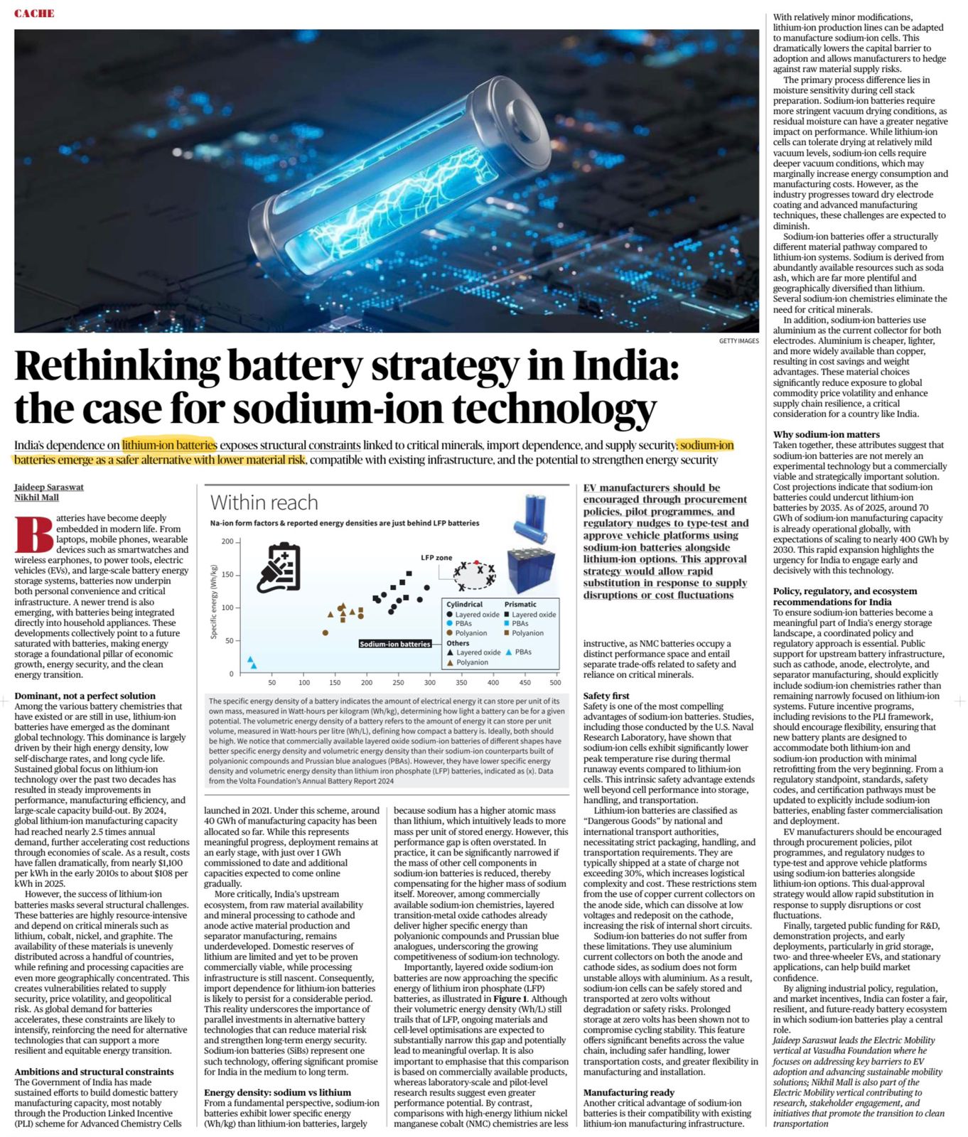 • India’s heavy dependence on lithium-ion batteries creates supply-chain risks due to reliance on imported critical minerals.