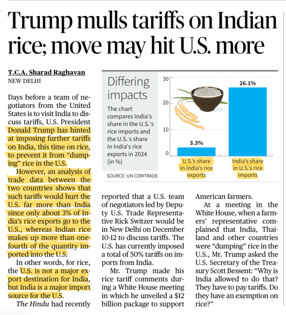 → U.S. is not a major market for Indian rice exports.