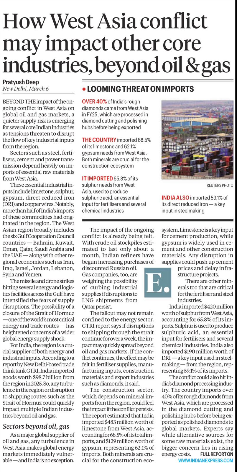 West Asia Conflict: Risks to India’s Core Industries and Raw Material Supply
